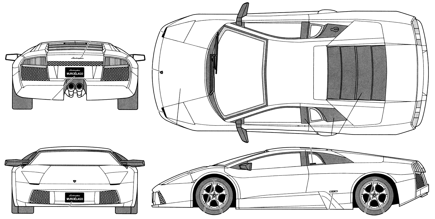 lamborghini blueprints murcielago blueprint 3d modeling coupe 2001 views porsche models 1996 prints templates